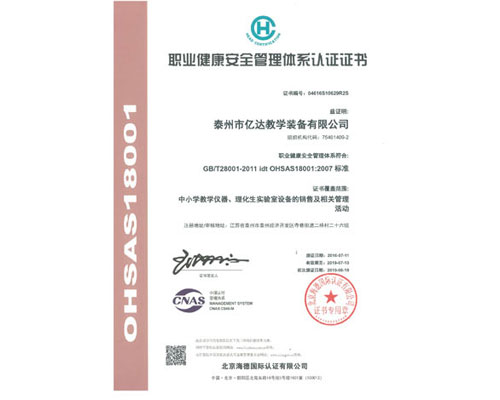 产品名称: 职业健康安全管理体系认证证书 |